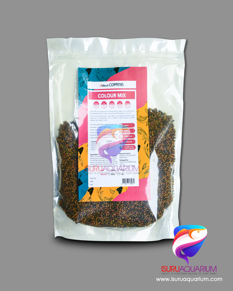 Coppens Color Mix is a luxurious mix of premium Alltech Coppens feeds. We have united all the good elements of our Orange, Spirulina and Wheatgerm in one mix. Thanks to this combination, Coppens Color Mix is rich in essential Omega-3 fatty acids, rich in carotenoids, rich in Vitamin E and contains a natural prebiotic and organic acids. Unparalleled and efficient growth while minimizing the impact on the environment.