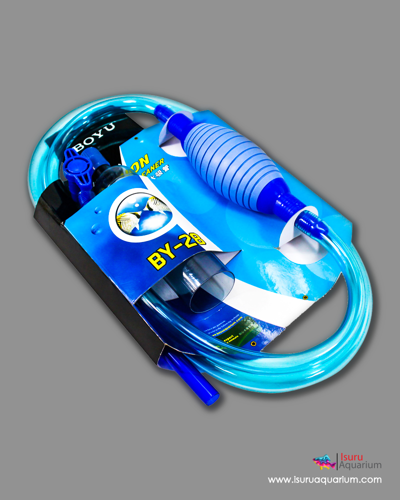 Submerge gravel vacuum cleaner inside aquarium. Place other end of hose into a bucket. Open up flow control valve. Start SQUEEZING the auto siphon pump until a siphon is created. Remove fish waste and debris by lowering gravel vacuum on gravel. Adjust flow control valve as needed for different size aquariums.