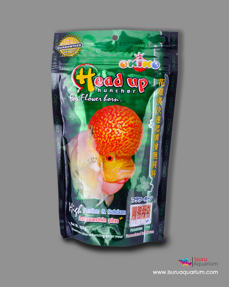 High quality Flowerhorn fish food with Astaxanthin plus. Greatly improves the size of the kok in your fish. Feed is high in protein so to help the fish to grow at a faster rate. High content of spirulina and krill extracts with other natural color enhancing elements that will improve the fish’s size in 1-2 weeks. A special immune substance added to increase fish’s resistance against diseases. . Greatly improves the head shape in your fish. High Protein & Calcium Crude Protein: max 51% Crude Fat: max 5% Crude Ash: min 12% Crude Fibre: min 3% Moisture: min 10% Net weight 100 g.