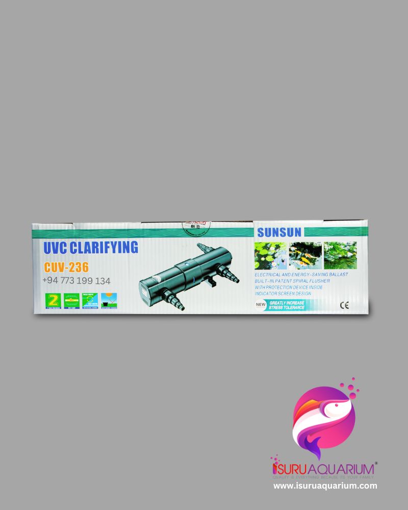 Experience Pristine Pond Water with the SUNSUN CUV 236 UV-C Clarifier. Welcome to the world of crystal-clear pond water with the SUNSUN CUV 236 UV-C Clarifier. Designed to protect your beloved fish and plants while ensuring a clean and healthy environment, this powerful 36 Watt clarifier offers an effective solution for maintaining optimal water conditions. Say goodbye to harmful germs, unsightly algae, and the need for chemical additives as you enjoy the benefits of this exceptional UV-C clarifier.
