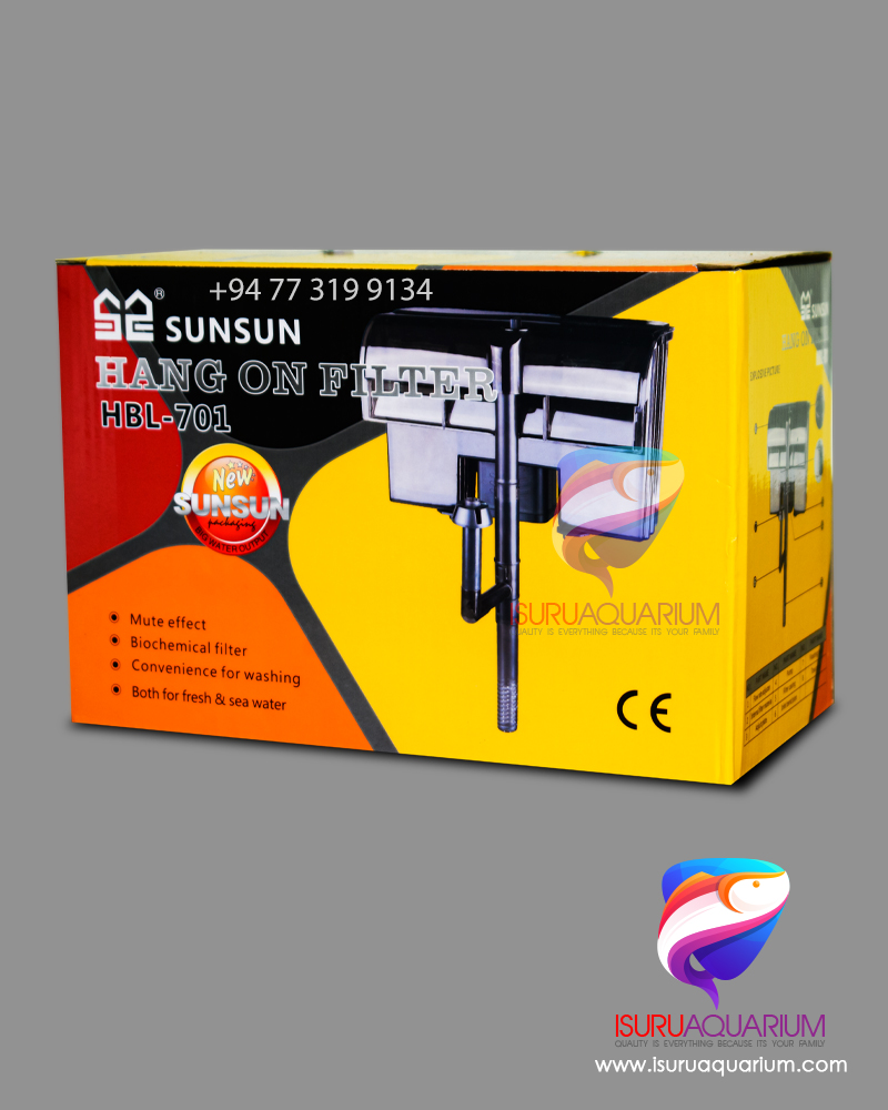 SUNSUN HBL-701 Hang on Filter pump for your medium or small-sized fish tank, convenient for washing, the total mute effect has a biochemical filter plate with carbon. For both fresh water and seawater. Flow can be adjusted according to need Impeller must be put into the water completely to avoid equipment burn away Water inlet, depth in water and gradient can be adjusted The flow can be adjusted according to the need using the switch Mute effect Biochemical filter Convenient for washing Easy to Handle Parameters